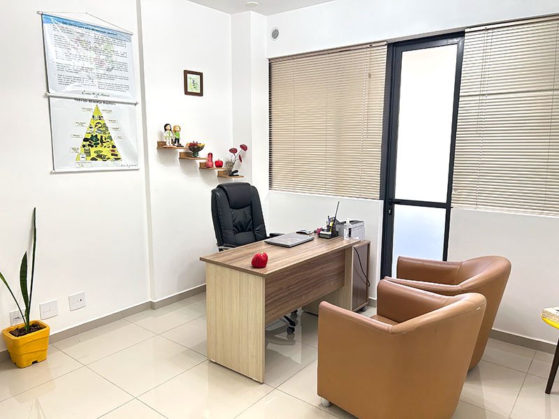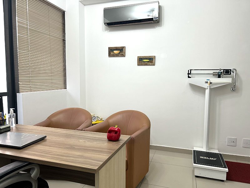O consultório fica no 1º andar do edifício Eco Tower, que é seguro, moderno, e ainda conta com estacionamento e acessibilidade